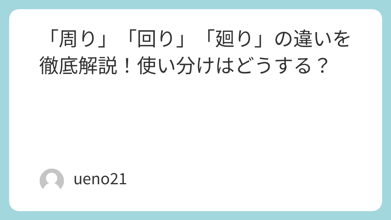 「周り」「回り」「廻り」は、いずれも「まわる」という動作や範囲を表す言葉ですが、