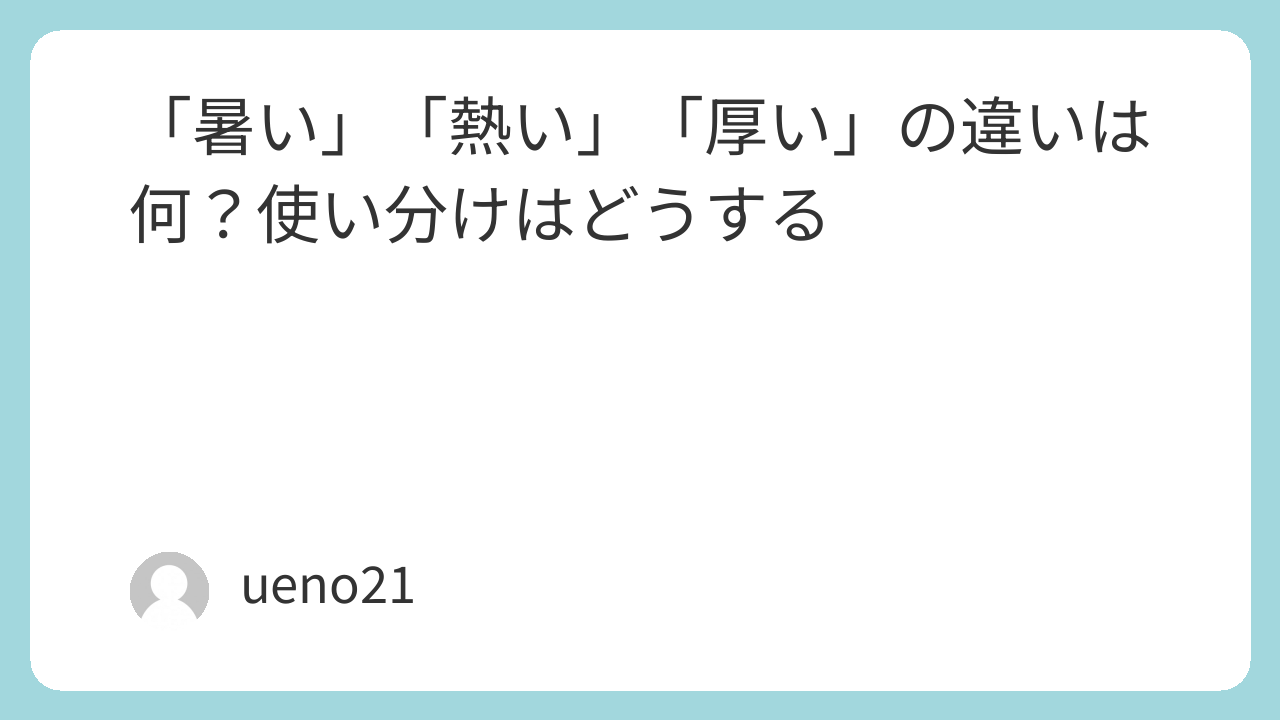 「アツイ」は音は同じでも意味は異なります。対象の性質(気温・物体・厚み)を意識すれば、正しく使い分けることができます。日本語のこうした微妙な違いを理解することで、表現がより豊かになります。