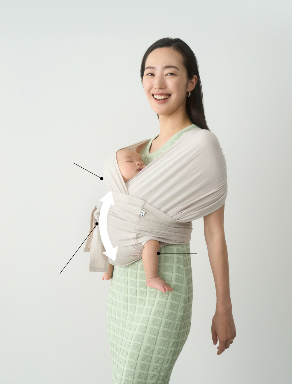 ・布地は「SoftBreeze™」という、やわらかく肌あたりの良い素材を使用。密着感を重視しており、赤ちゃんが落ち着きやすい設計。