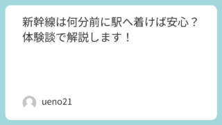 おでかけ 新幹線は何分前に駅へ着けば安心?体験談で解説します! 新幹線は何分前に駅へ着けば安心?初心者・子連れ・荷物ありなど利用シーン別に、体験談を交えてわかりやすく解説します。 2025.10.01 おでかけ生活